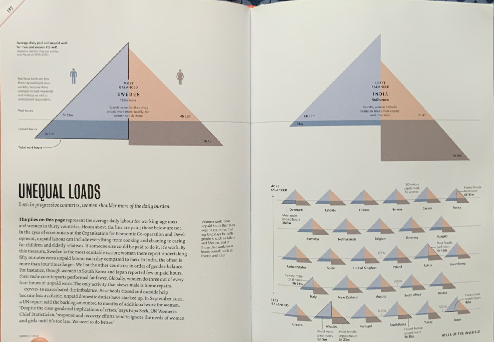 Take, for instance, the stark contrast in how Sweden and India approach unpaid labor. The following graph is from the beautiful Atlas of The Invisible.