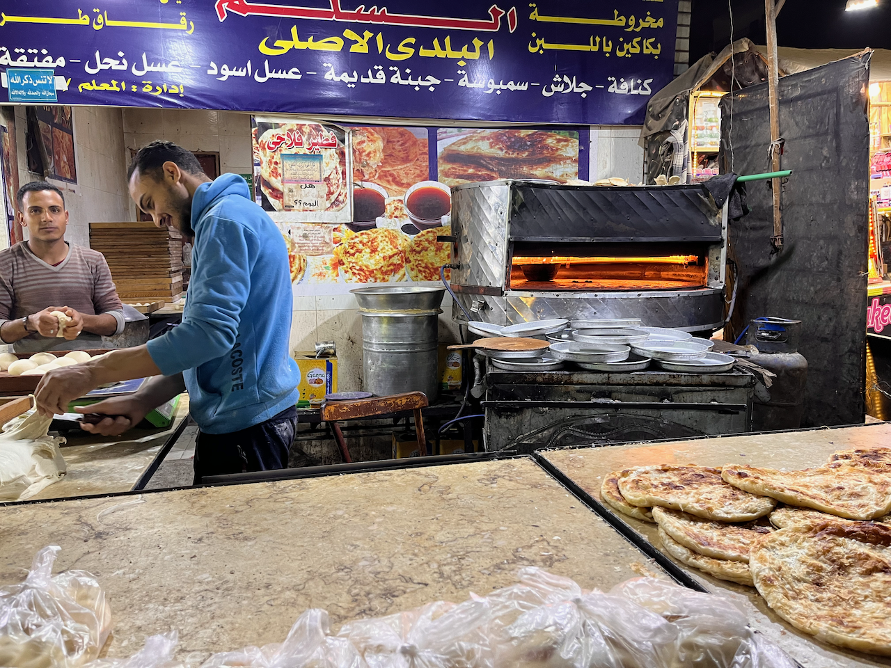 Egyptian bakery on the street selling staple bread for breakfast and lunch.