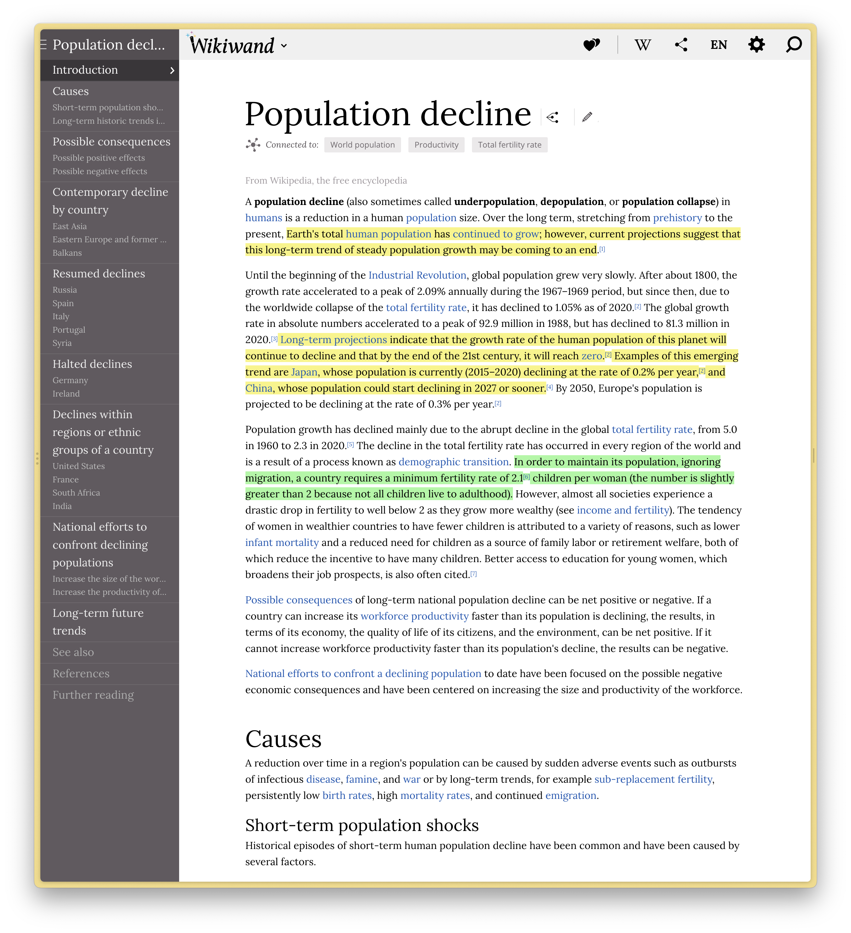 If you are curious about population declines, I can recommend you some good starting points.