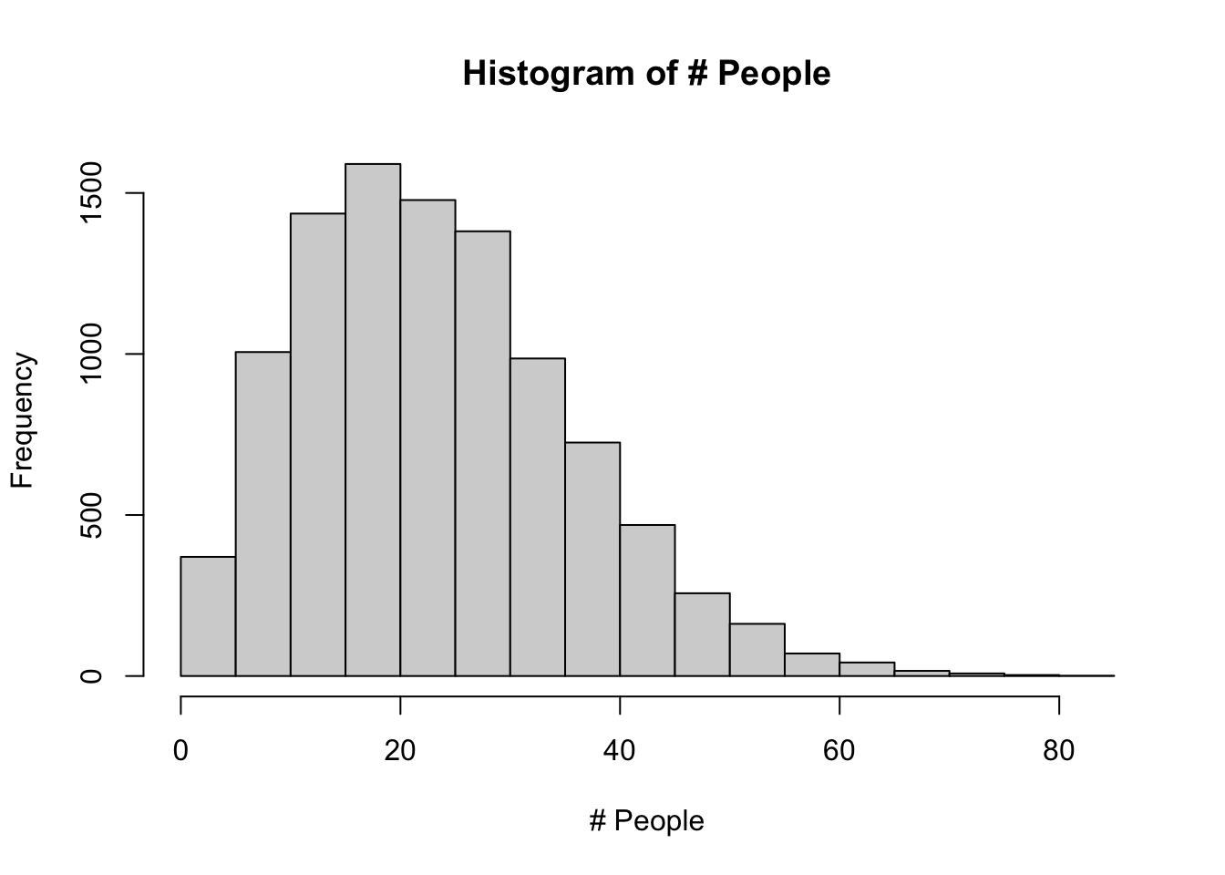 hist(l, main = "Histogram of # People",