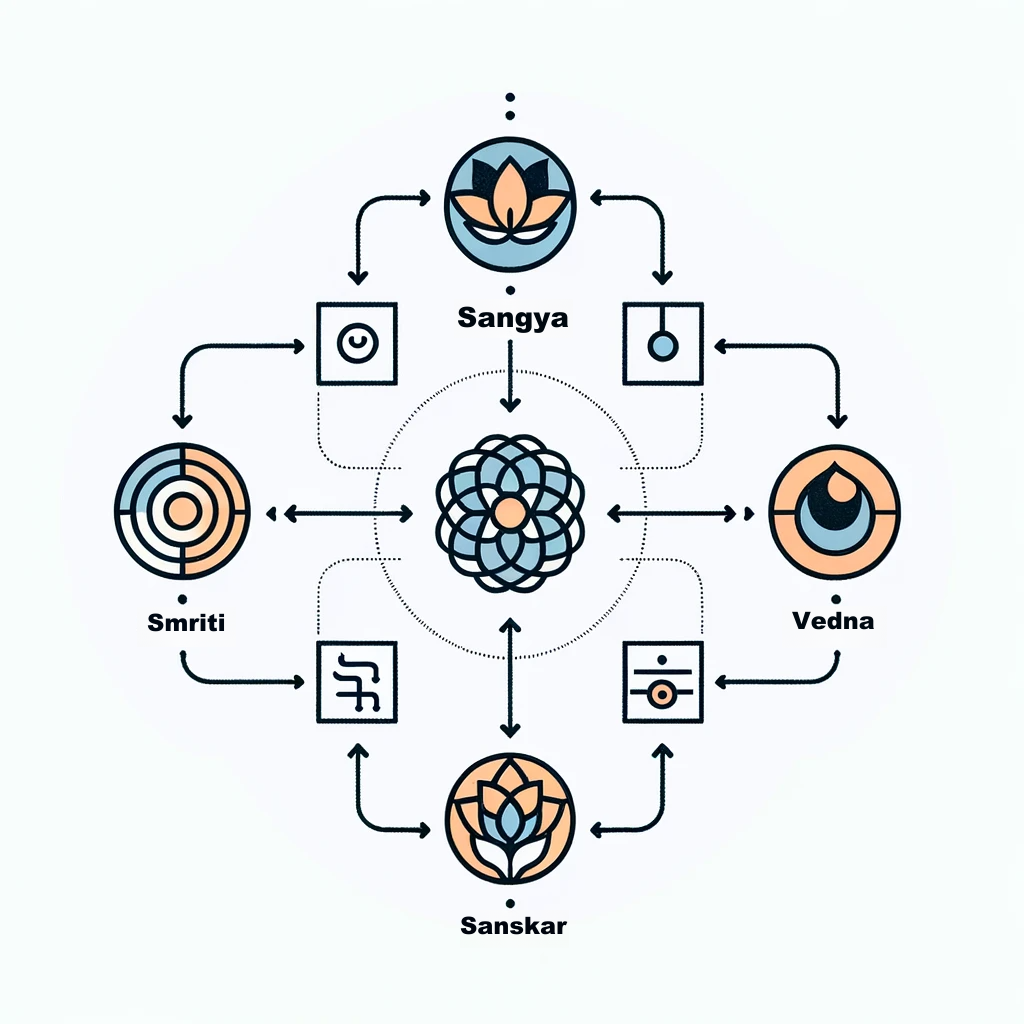 The conceptual framework of Sangya, Smriti, Vedna, and Sanskar remarkably mirrors modern psychological constructs.