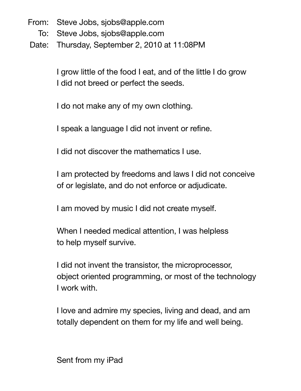 Steve Jobs: Letter to Himself